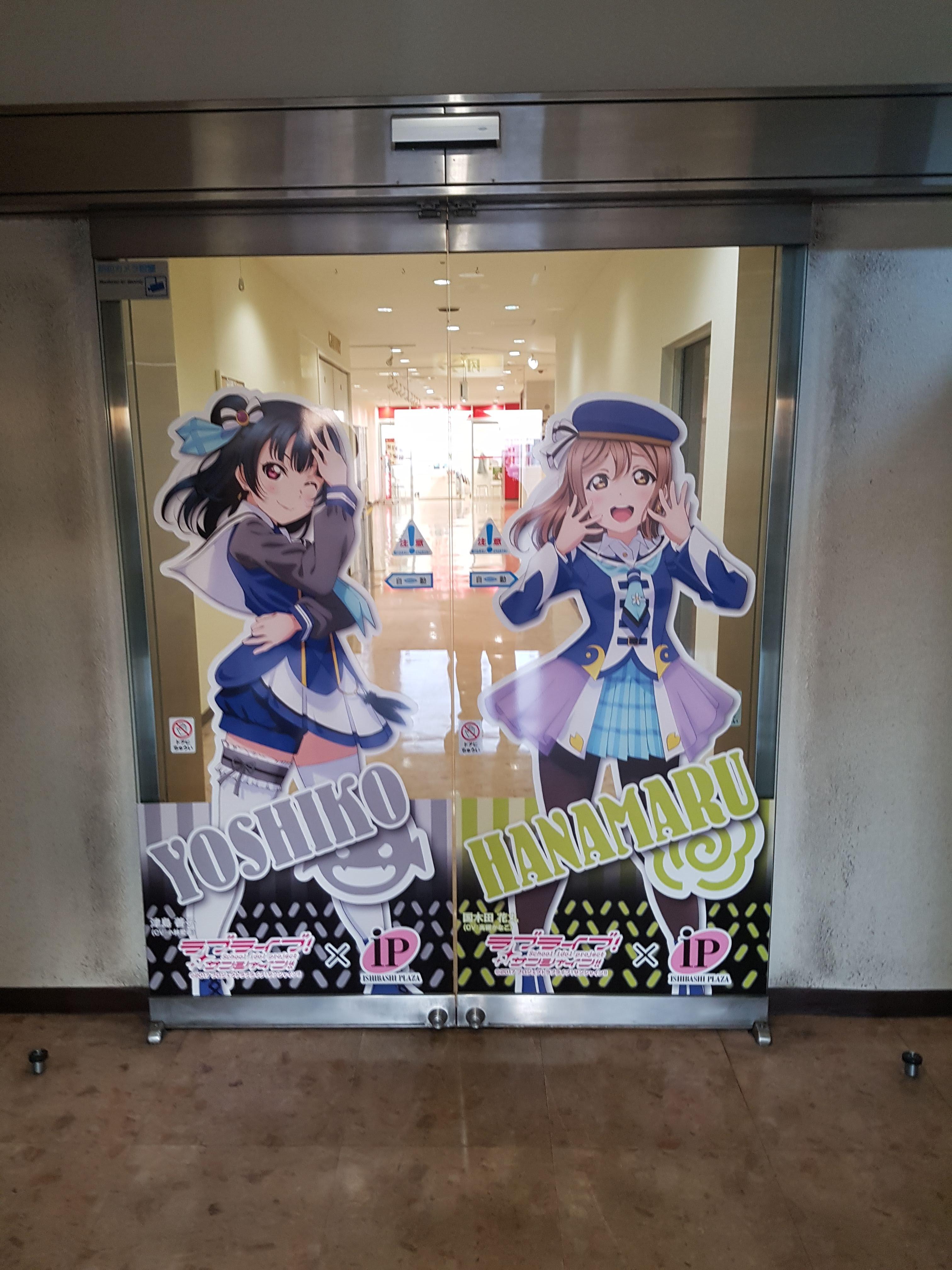 쇼핑몰 내부에 아쿠아 일러스트가 부착되어 있는데요